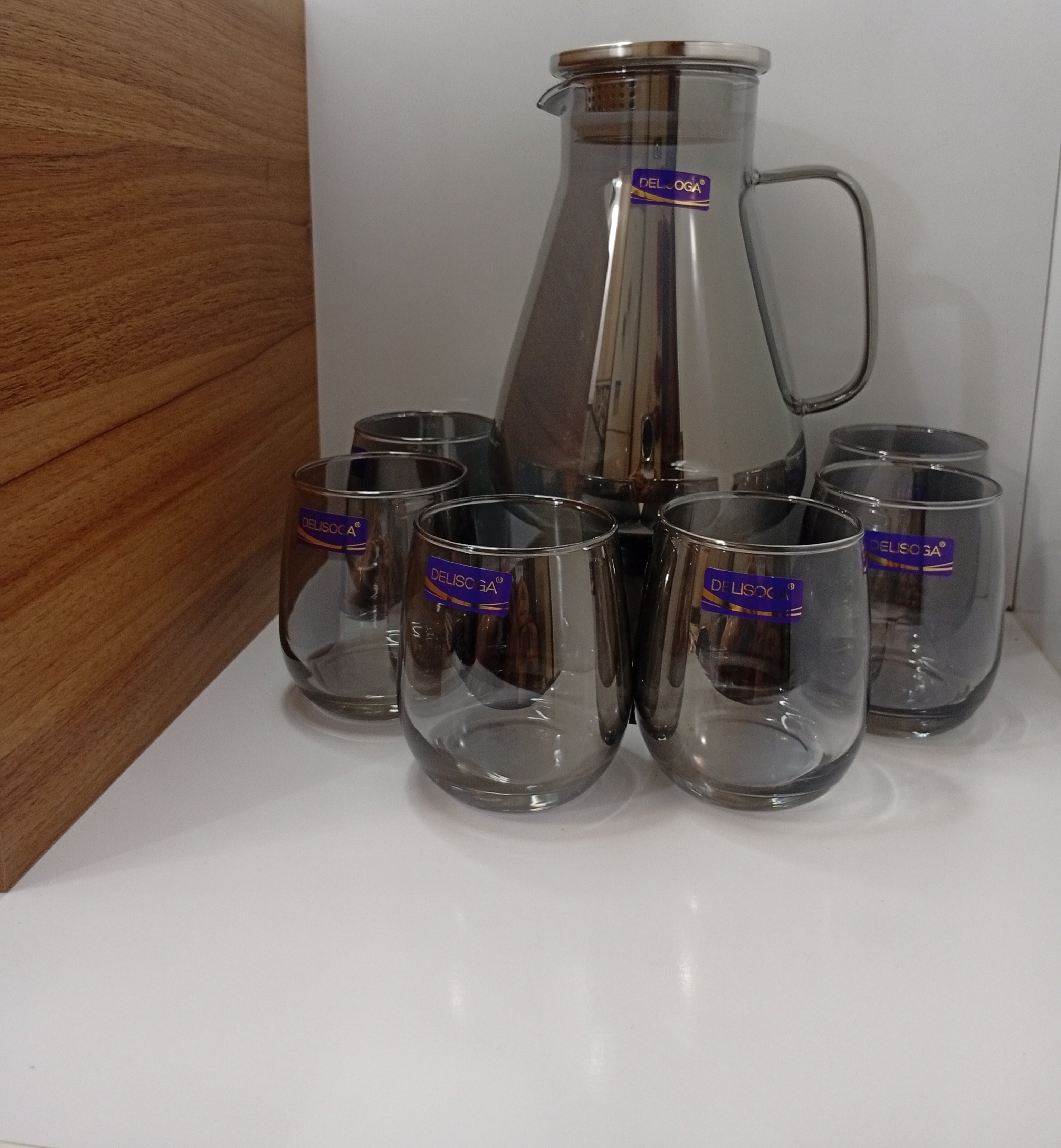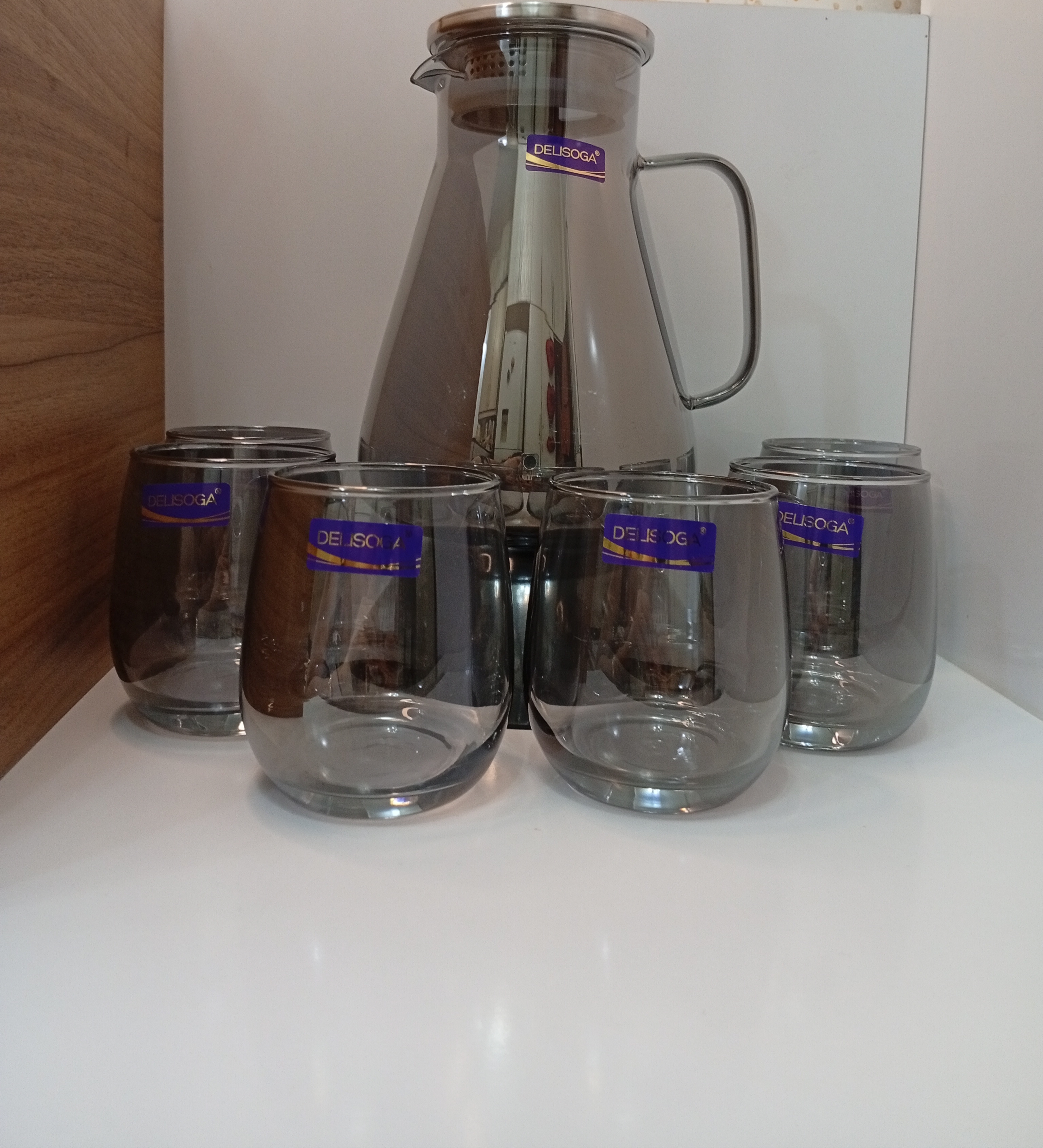 گنجایش پارچ: 1800 گنجایش لیوان: 350 میلی: رنگ دودی شفاف