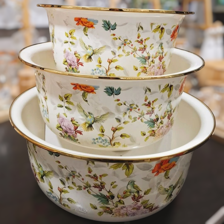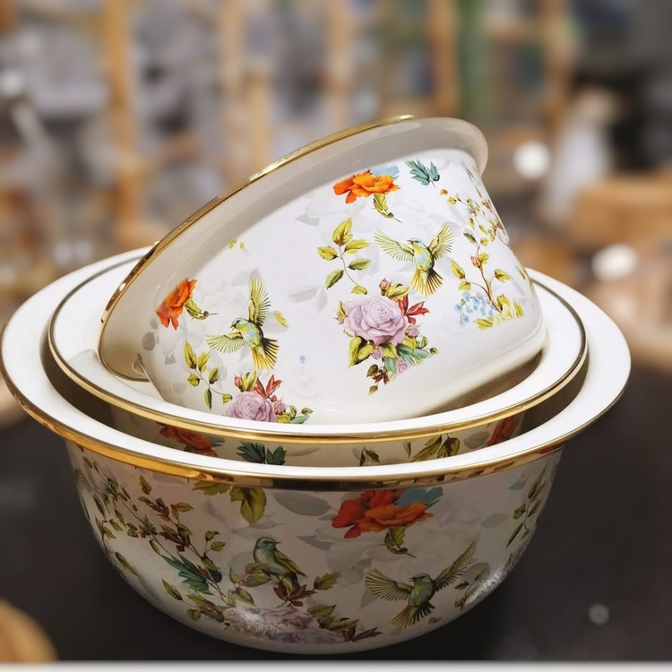لگن سه تیکه لعابی طرح گل و پرنده